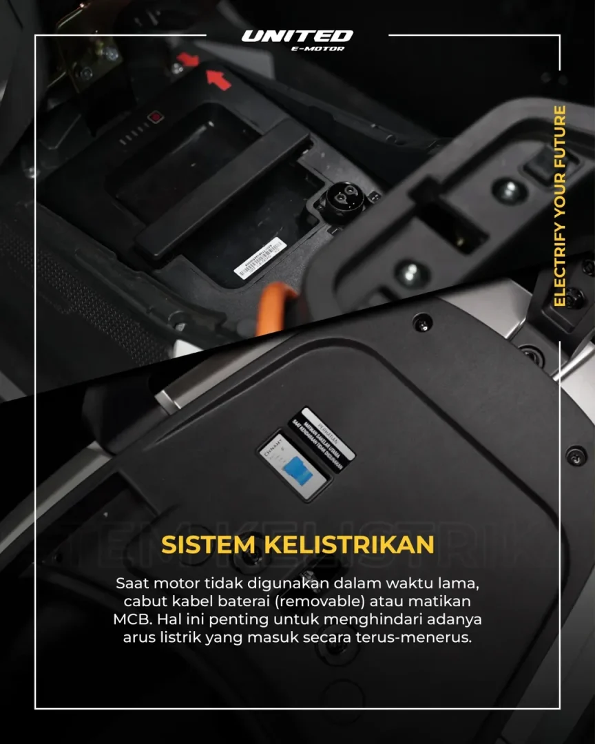 Motor listrik adalah investasi untuk masa depan yang lebih hijau dan hemat. Dengan perawatan yang tepat, investasi Anda akan bertahan lebih lama dan memberikan performa optimal. United E-Motor berkomitmen untuk memberikan solusi transportasi listrik berkualitas dengan tagline “Electrify Your Future” – mari bersama-sama menuju masa depan yang lebih berkelanjutan!